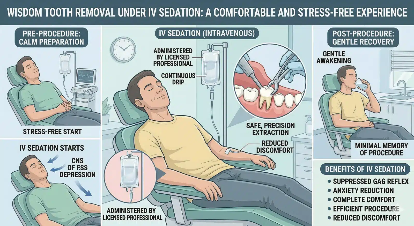 IV sedation offers several advantages, making it an excellent choice for wisdom tooth extraction: